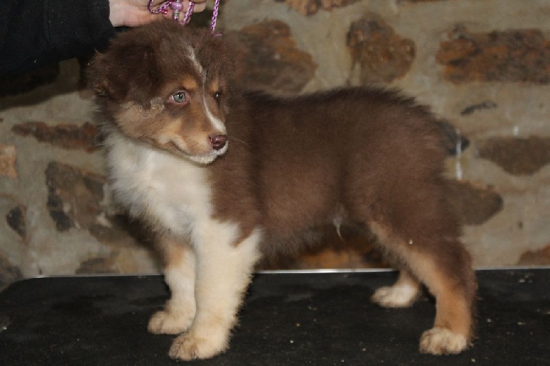 rouge tricolore, queue écourtée, un loulou plutôt calme et très bien construit avec une forte ossature, il partira de préférence pour expo voir en contrat d?élevage